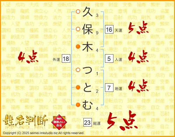 久(3画)保(9画)木(4画) つ(1画)と(2画)む(4画)