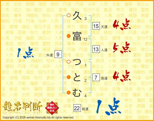 久富つとむさんの人運は13画の5点!