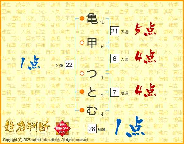 亀甲つとむさんの天運は21画の5点!