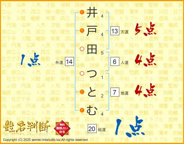 井戸田つとむさんの総運は20画の1点!
