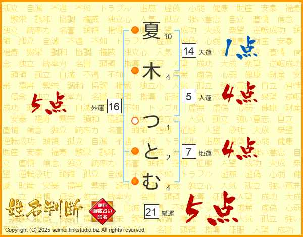 夏(10画)木(4画) つ(1画)と(2画)む(4画)