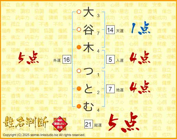 大谷木つとむさんの総運は21画の5点!