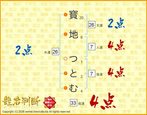 寳地つとむさんの天運は26画の2点!