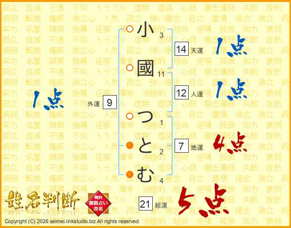 小(3画)國(11画) つ(1画)と(2画)む(4画)