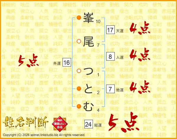 峯尾つとむさんの天運は17画の4点!