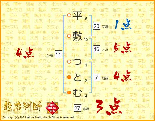 平敷つとむさんの総運は27画の3点!