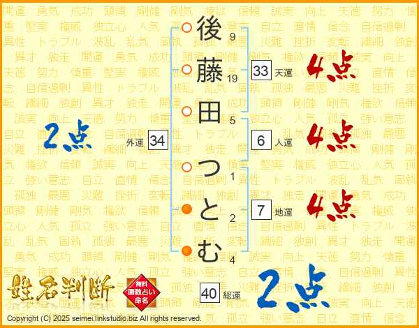 後藤田つとむさんの天運は33画の4点!