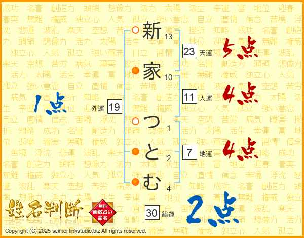 新家つとむさんの天運は23画の5点!