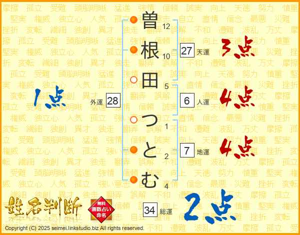 曽根田つとむさんの地運は7画の4点!
