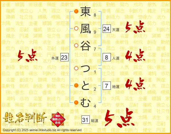 東風谷つとむさんの総運は31画の5点!
