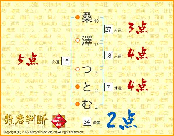 桑澤つとむさんの総運は34画の2点!