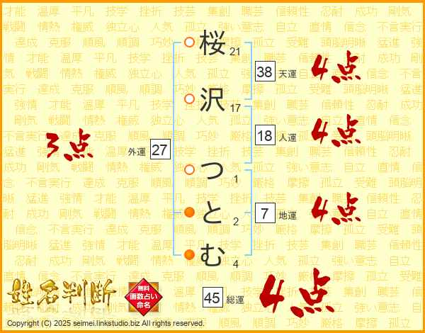 桜(21画)沢(17画) つ(1画)と(2画)む(4画)