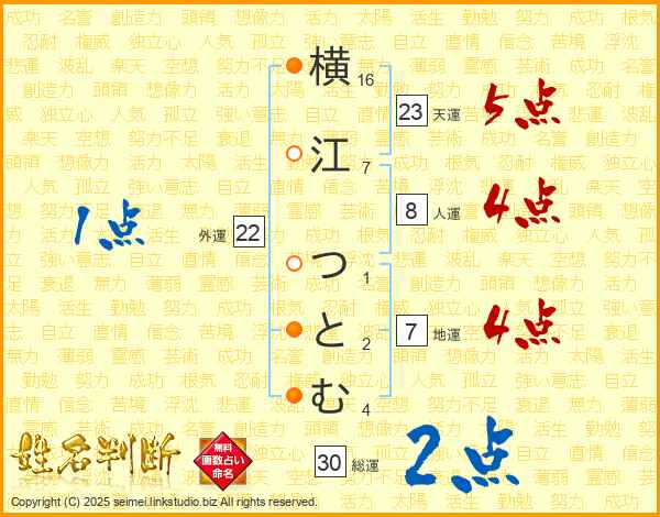 横江つとむさんの天運は23画の5点!
