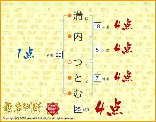 溝内つとむさんの総運は25画の4点!