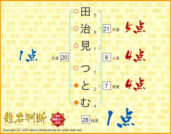 田治見つとむさんの天運は21画の5点!