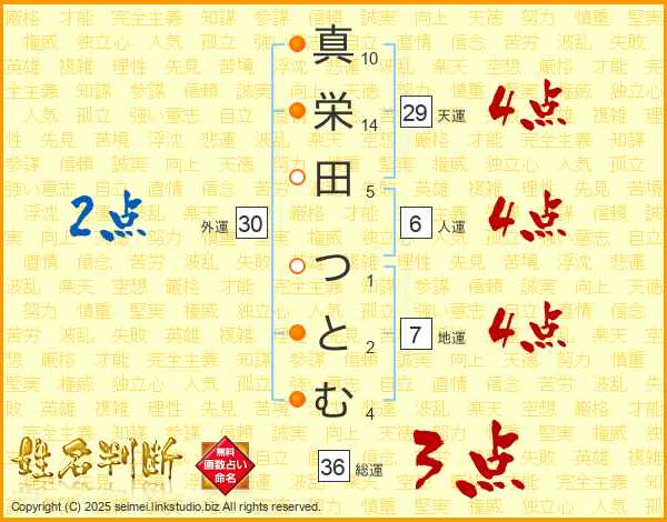 真栄田つとむさんの総運は36画の3点!