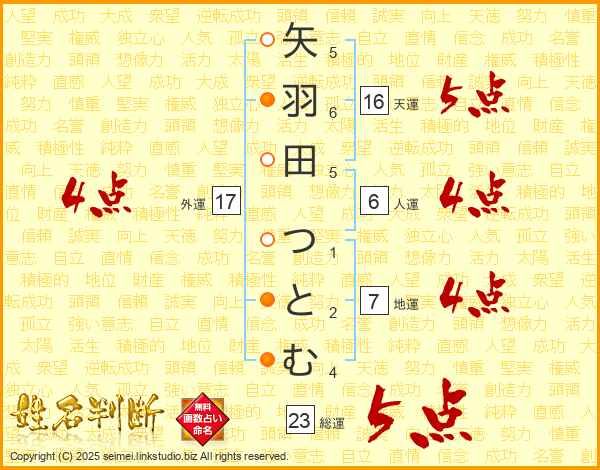 矢(5画)羽(6画)田(5画) つ(1画)と(2画)む(4画)