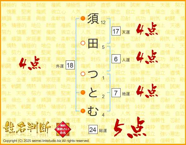 須田つとむさんの総運は24画の5点!