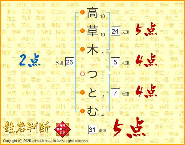 高草木つとむさんの天運は24画の5点!