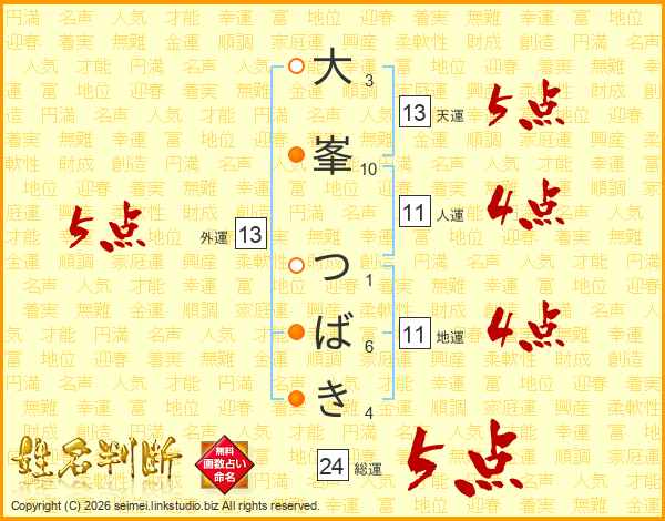 大峯つばきさんの天運は13画の5点!