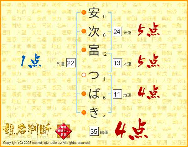 安次富つばきさんの総運は35画の4点!