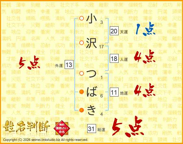 小沢つばきさんの総運は31画の5点!