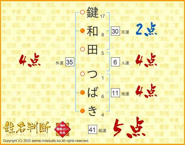 鍵(17画)和(8画)田(5画) つ(1画)ば(6画)き(4画)