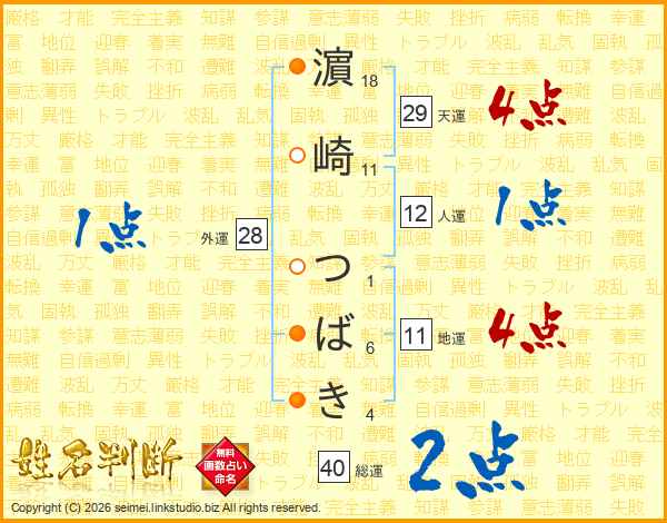 濵(18画)崎(11画) つ(1画)ば(6画)き(4画)