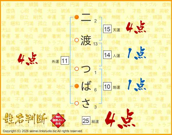 二渡つばささんの総運は25画の4点!