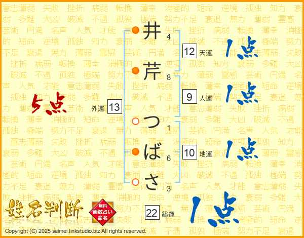 井(4画)芹(8画) つ(1画)ば(6画)さ(3画)
