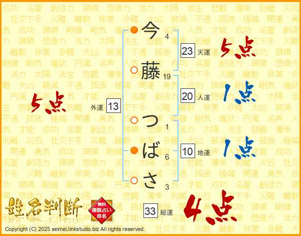 今(4画)藤(19画) つ(1画)ば(6画)さ(3画)