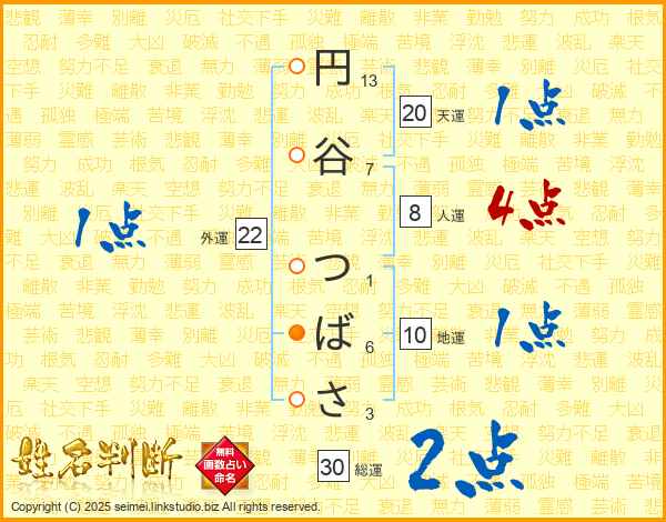 円谷つばささんの総運は30画の2点!
