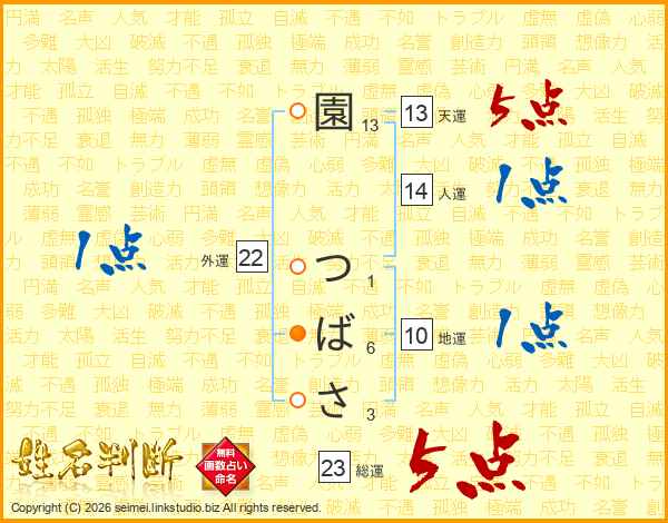 園つばささんの総運は23画の5点!