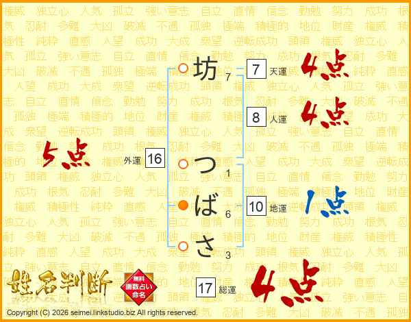 坊つばささんの総運は17画の4点!