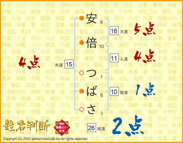 安倍つばささんの総運は26画の2点!