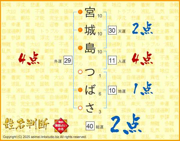 宮城島つばささんの総運は40画の2点!