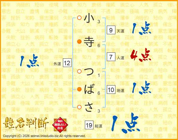 小寺つばささんの総運は19画の1点!