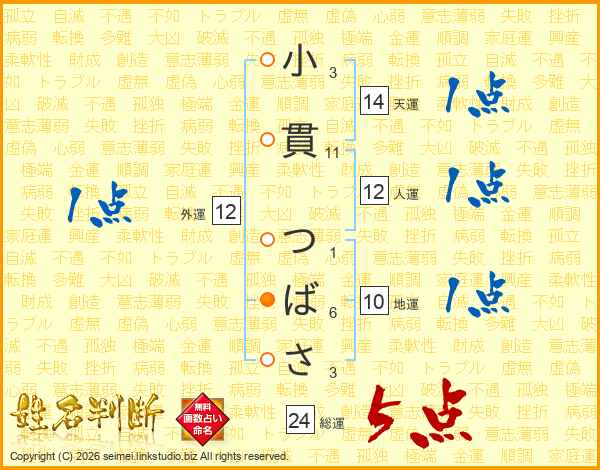 小貫つばささんの総運は24画の5点!
