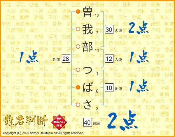 曽我部つばささんの総運は40画の2点!