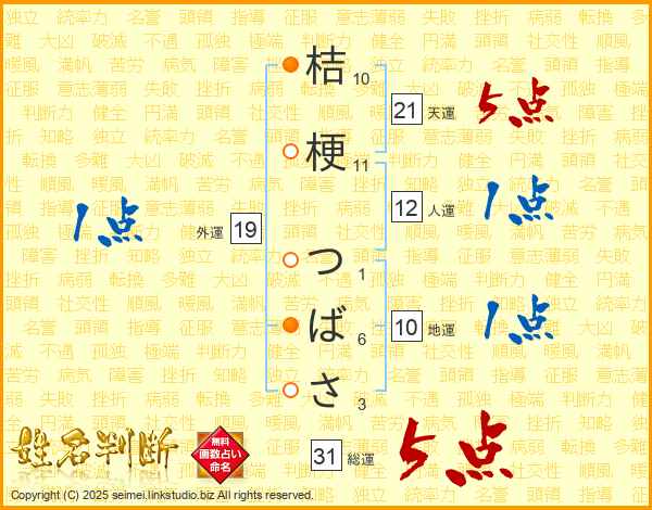 桔(10画)梗(11画) つ(1画)ば(6画)さ(3画)