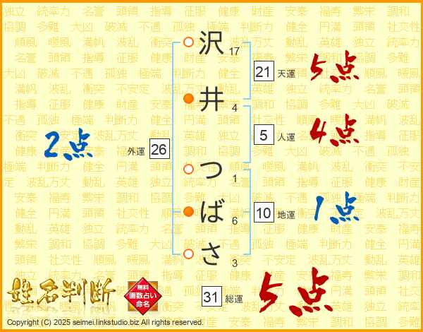 沢(17画)井(4画) つ(1画)ば(6画)さ(3画)
