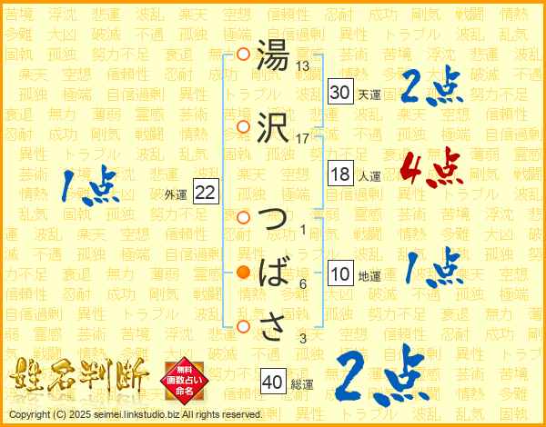 湯沢つばささんの総運は40画の2点!