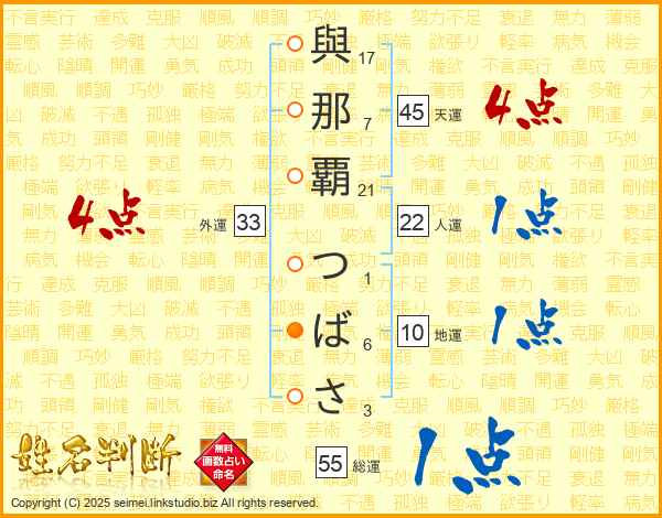 與那覇つばささんの天運は45画の4点!