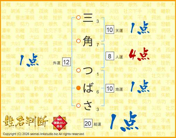 三角つばささんの総運は20画の1点!