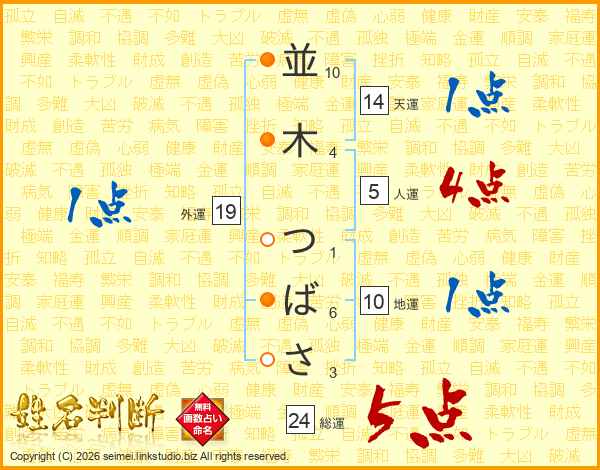 並(10画)木(4画) つ(1画)ば(6画)さ(3画)