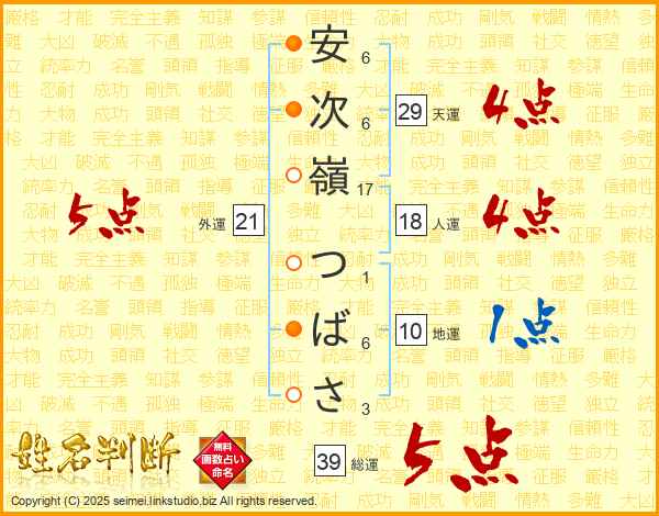 安次嶺つばささんの総運は39画の5点