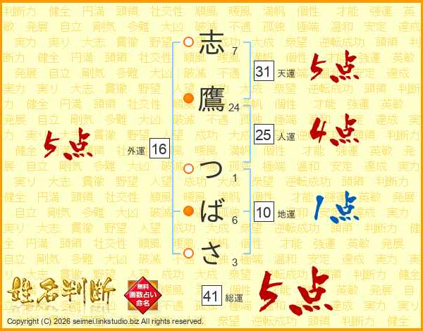 志鷹つばささんの総運は41画の5点!