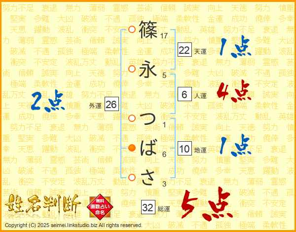 篠永つばささんの総運は32画の5点!