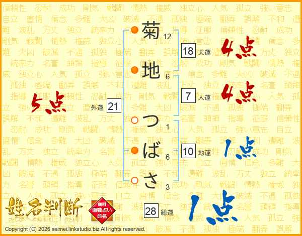 菊(12画)地(6画) つ(1画)ば(6画)さ(3画)