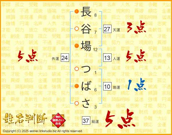長谷場つばささんの総運は37画の5点!